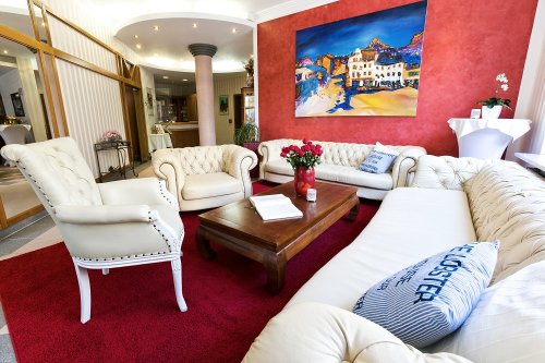 Kamers De knusse kamers laten veel zonlicht binnen en zijn comfortabel ingericht. De kamers beschikken over een tv, telefoon en een badkamer met een bad of douche, toilet föhn. Uw kamer is per lift bereikbaar.