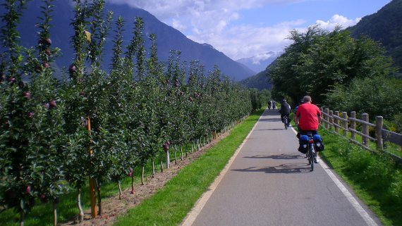 Fietsen ten zuiden van de Alpen is een geweldige reiservaring. Een adembenemend Alpenpanorama trekt aan u voorbij en bergen weerspiegelen in gletsjerblauwe meren. De beroemde Tiroler gastvrijheid wordt verrijkt met zuidelijke invloeden als u steeds zuidelijker fietst. Langs de Etsch verandert het landschap en wordt het steeds meer Italiaans: van een Kaffee naar een cappuccino. Geniet van een heerlijke dag aan het Gardameer. Een kroon op deze fietsvakantie is Venetië, daar in de verte, omringd door azuurblauwe zee......