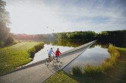 | Fietsvakantie door Belgisch Limburg België In Belgisch Limburg, de mooiste fietsprovincie van België, wacht een adembenemend landschap van water, bos en heide op u. Hier zijn drie unieke fietsbelevenissen gecreëerd die u niet mag missen. Stel u voor: fietsen op ooghoogte door een vijver, met een panoramisch uitzicht ...