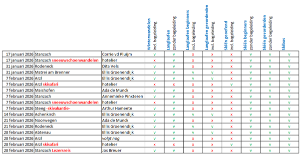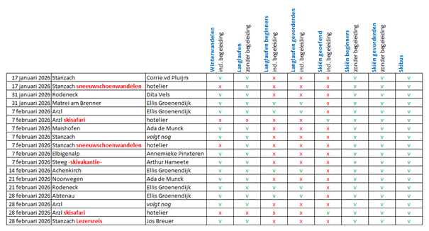 Om het u (nog) makkelijker te maken hebben wij voor u al onze winterbusvakanties op een rij gezet. Hierbij hebben wij aangegeven welke bestemmingen voor welke activiteit(en) geschikt zijn en daarbij ook de betreffende begeleid(st)er bij gezet.